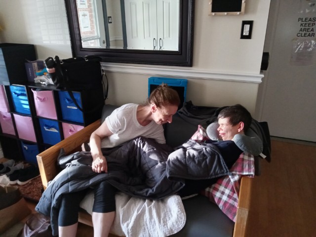 Curtis, who was born with cancer, fell seriously ill and was rushed to SickKids Hospital, where he received his diagnosis at just one year of age. June explains, “… in one moment, our lives were turned upside down.” After treatment, Curtis returned home, cancer free, but the cost was high. Due to the extent of his illness, Curtis is deafblind with a developmental disability. He attended his local school with support from W. Ross MacDonald, a school for the blind and deafblind, graduating in 2007. While this support was critical for the family, Curtis needed so much more. Bruce explains, “Outside of school, it was very hard for us. We had to adjust our lifestyle to his needs. We couldn’t go out independently.”